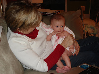 Cuddling with Grandma after my bath: