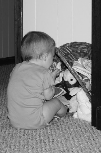 Another day, another play. We have this big quilt on the floor with all these toys for her to play with. In the corner of the room, however, there’s a basket with some of her other toys. She’ll leave the quilt with its large selection of toys and crawl to the basket, dump it over and pick out other toys. Like, who am I to pick out which toys she wants to play with?