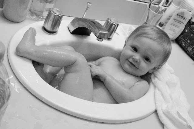 A late night bath after Hannah threw up all over herself. She never seemed like she felt bad…and she quite liked the sink bath.
