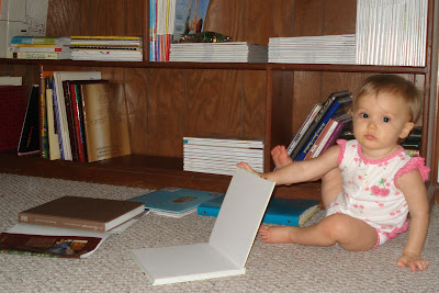 Now I know people say you have to “pick your no’s.” So I try not to say no to everything I don’t approve of, just the stuff that’s definitely a no – for example, things that can hurt her. So if she’s playing with a nasty dog toy, we’ll take it and put one of her toys in her hand instead. But what about things that can hurt me? I mean not physically, but drive me crazy? I have all my design magazines on the built-ins in the living room. I do not want them torn. (And before you say anything, we do not have high shelves. All our shelves are conveniently located within Hannah’s reach.) Perhaps I should get over it, but I don’t like the whole “if it’s not broken, it’s not our’s” mentality. We should be able to have some things that are not torn, broken, or stained. Hannah, however, thinks they are the most fun things to play with. First she pulls – or throws them off the shelf – then she goes after the covers, either with her hands or mouth. I get there, say “no ma’am” and then pick her up and relocate her to the middle of her toy mecca. And we play this fetching game most of the day.