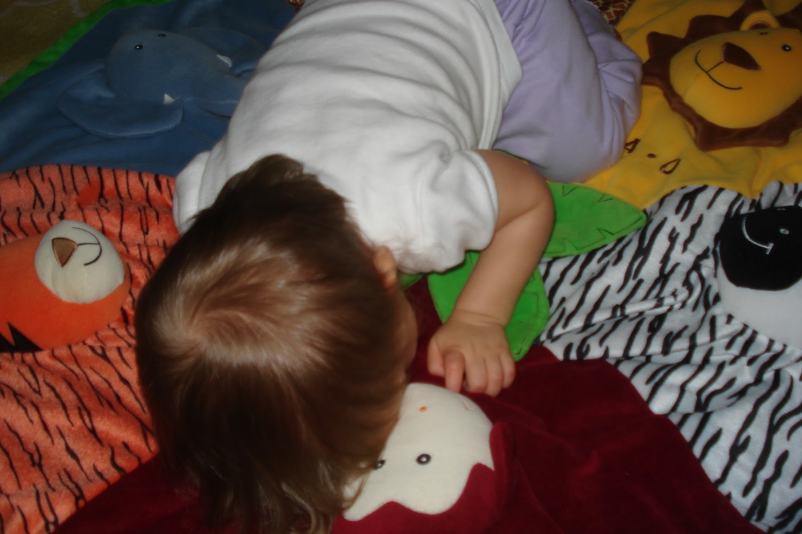 5 – Uncle Will gave Hannah an adorable animal play mat. If you push the animal heads they make noise. For some reason Hannah thinks she has to push them with her head. Uncle Will, did you demonstrate? We can’t figure it out…but it is kinda funny.