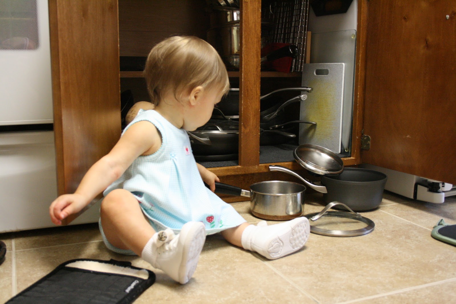 We will be putting locks on all of the kitchen cabinets (the cleaners under the sink are already locked – which really confuses her) asap. As soon as we do, you know it’ll be something else.