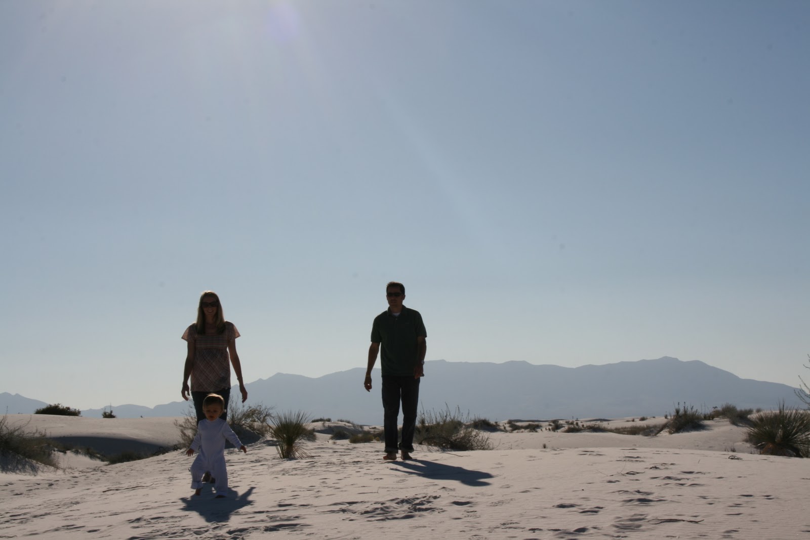Then we headed to New Mexico and White Sands National Monument. Very cool. It was a drive but worth it. Purely majestic. It was beautiful. Nothing but white sand for miles – the size of Rhode Island actually. It’s weird to be in the midst of all that white powdery sand and never see water. There should be an ocean somewhere, but you’re in the middle of the desert!