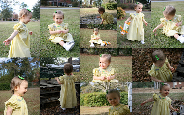 This is my attempt at getting a picture of Hannah after church on Sunday. It is getting harder and harder to take a picture of this child. I take her outside and she is gone – all over the yard – and will not stop and look at me for a second. Ok, I did get a couple of her looking at me. Only because I made lots of weird noises. If neighbors overheard they are probably wondering what in the world… Anyway, she sure is cute and full of personality. I’ll make a fool of myself any day for her. And someday she’ll want to just crawl under a rock.