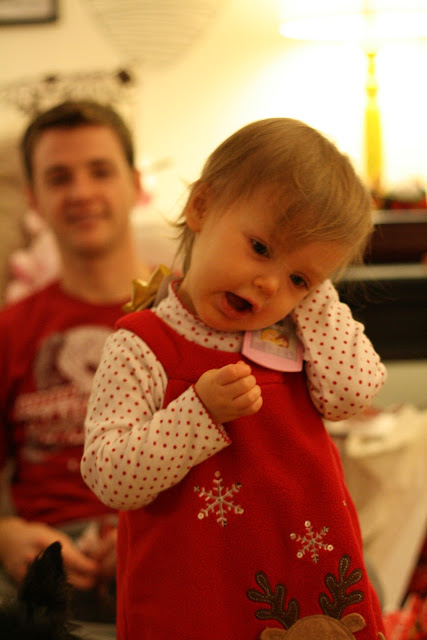 Hannah took a 2 hour afternoon nap (crazy, right?) and then my mom, Ben, and Will came down for dinner, presents, and playtime.