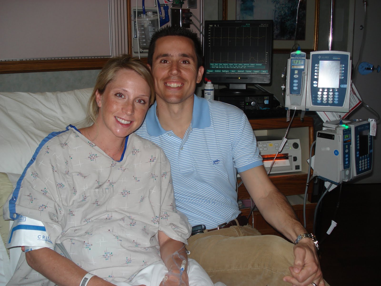 We were in our room within 20 minutes. I got a gown immediately, but then it was a waiting game. I was ready to get the show on the road. Naturally, we turned on ESPN and watched Mike and Mike… Here I am – last belly picture.