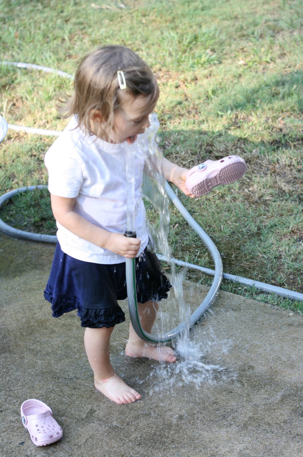 Hannah decided she needed to wash off her Crocs.