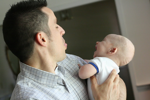 He found his tongue, and that was just plain cute. Daddy tried to get him to perform for the camera. Instead he just laughed. He has also rolled over. He’s sleeping great and the reflux is a little better. Some days are better than others. We have several clothing changes a day, and by “we” I mean both of us. I feel like I’m a big burp cloth. Good thing I love him a whole lot.