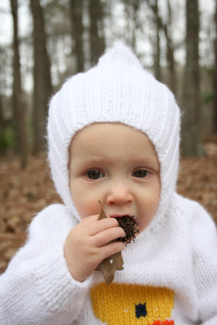 Last week, while outside for some fresh air, I took these. This sweater was made by Joe’s Aunt Barbara.