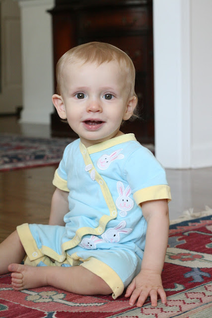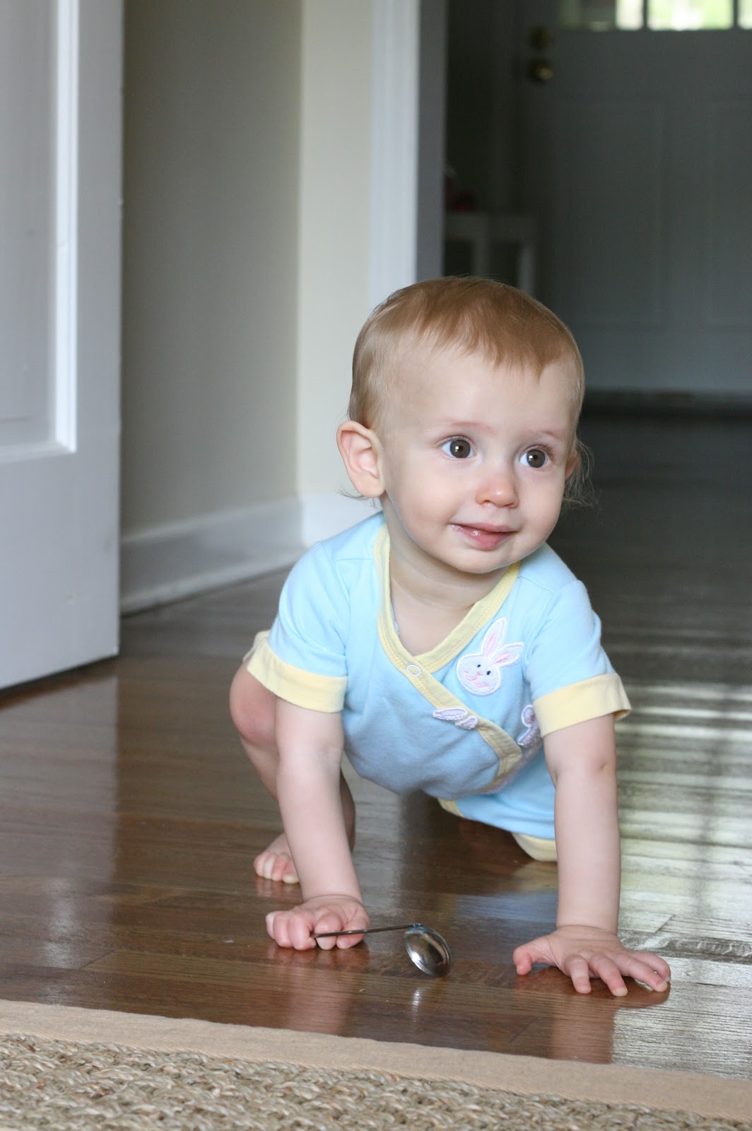 I am still nursing him. We have just begun to start the weaning process. I cannot believe how well this breastfeeding relationship has gone. I’ve said it a thousand times, but I’ll say it again: After all the problems I had in the 7 months of nursing Hannah, this has been such a blessing. He is a champ. While part of me is ready to wean him, part of me is a little sad. Four times a day I get to hold him and snuggle while he eats. Guess I’ll just have to hold him while he has his sippy cup…until he’s walking and too interested in other things to cuddle with mommy.