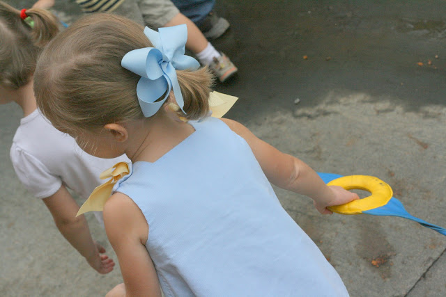 The fire house is right down the street from the preschool, so we walked. I like the little rope the kids hold on to.