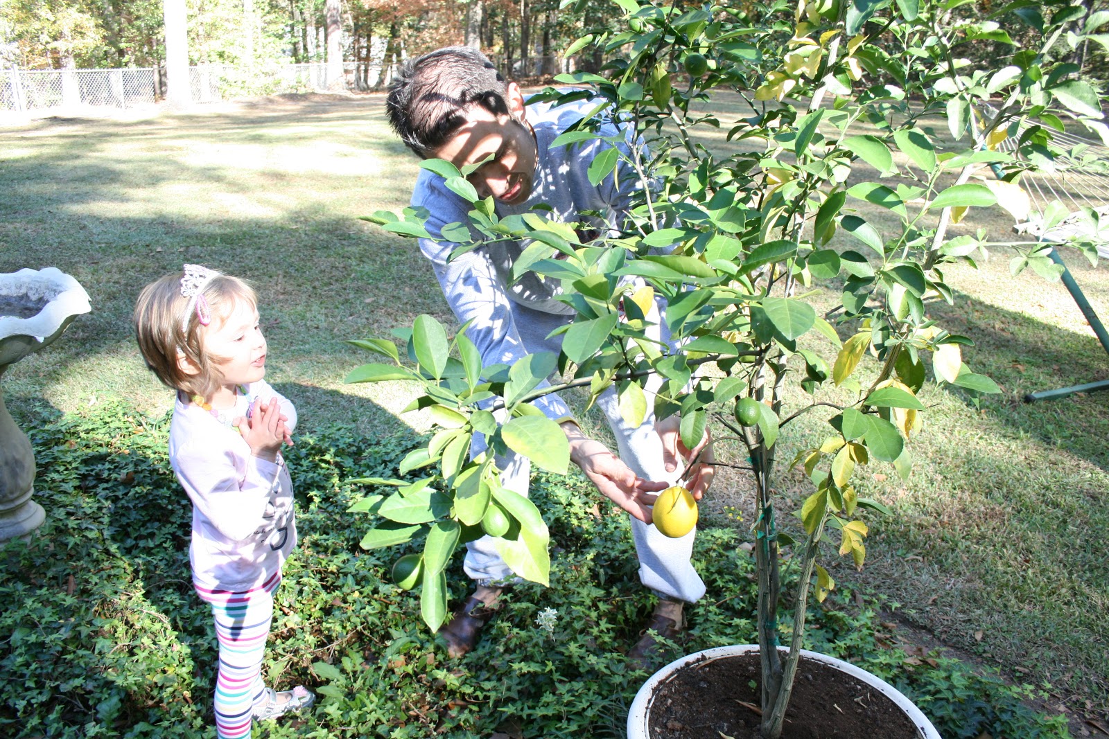We picked the very first lemon from our tree. {I gave this Meyer lemon tree to Joe for our 3rd anniversary.}