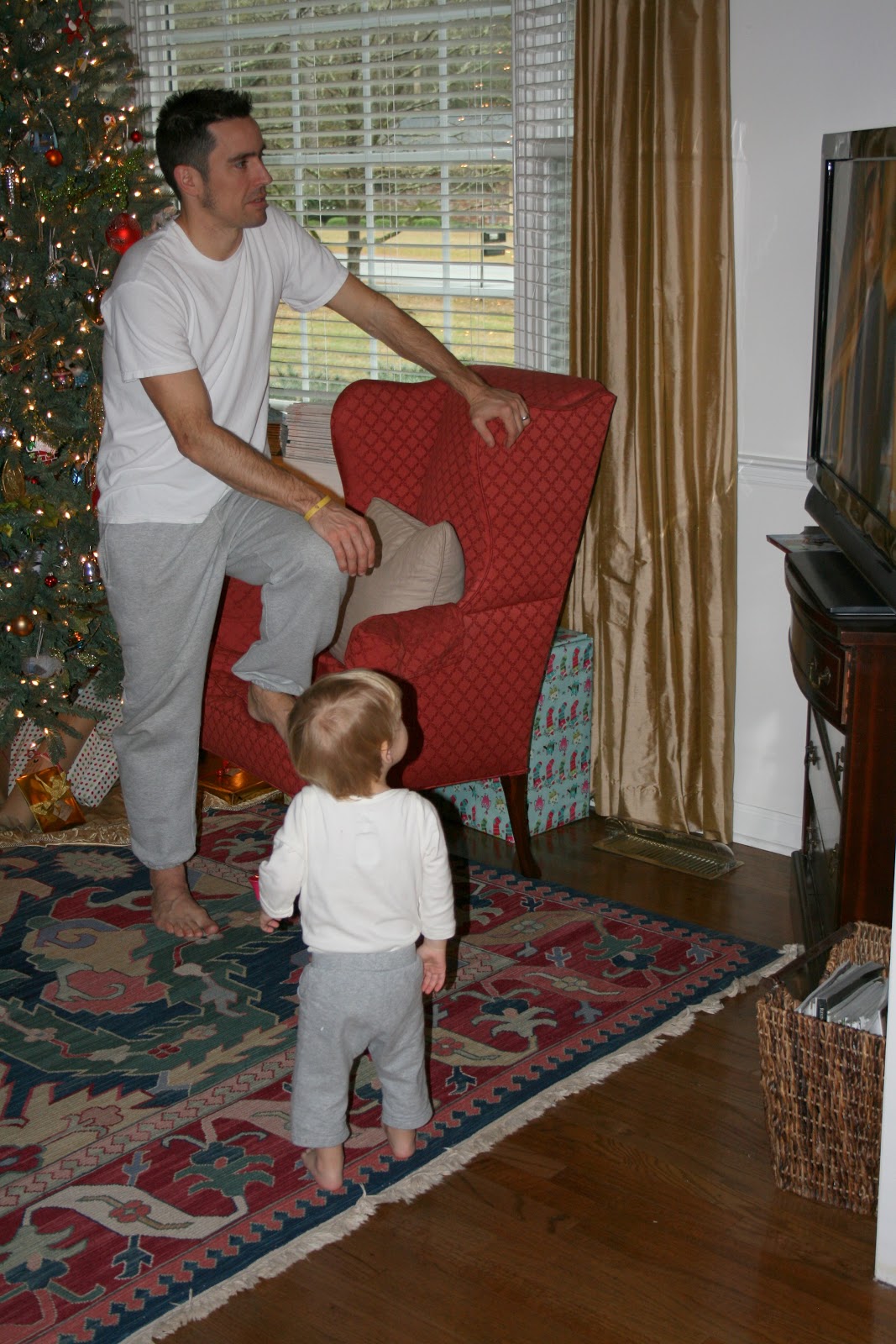 And just like that it’s Christmas Eve. Today, we’ve had Christmas movies playing non-stop. I believe this was The Polar Express. Like father, like son, standing – not sitting – in front of the tv:
