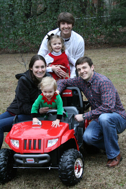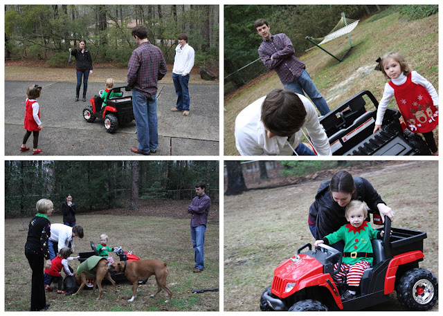 Uncle Ben and Aunt Katie, Uncle Will Will and Aunt Crystal brought the kiddos a car. Hannah was a tad overwhelmed and didn’t really want to ride…