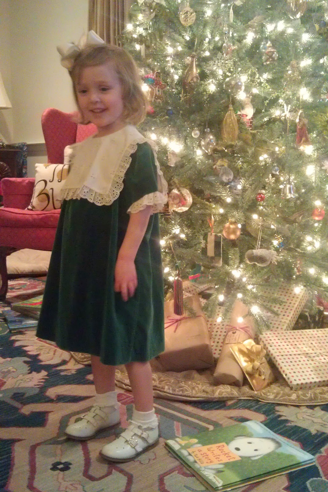 I forgot to get a family picture, either on Christmas Eve or Christmas Day, but I do have a few from my phone of Hannah in the dress:
