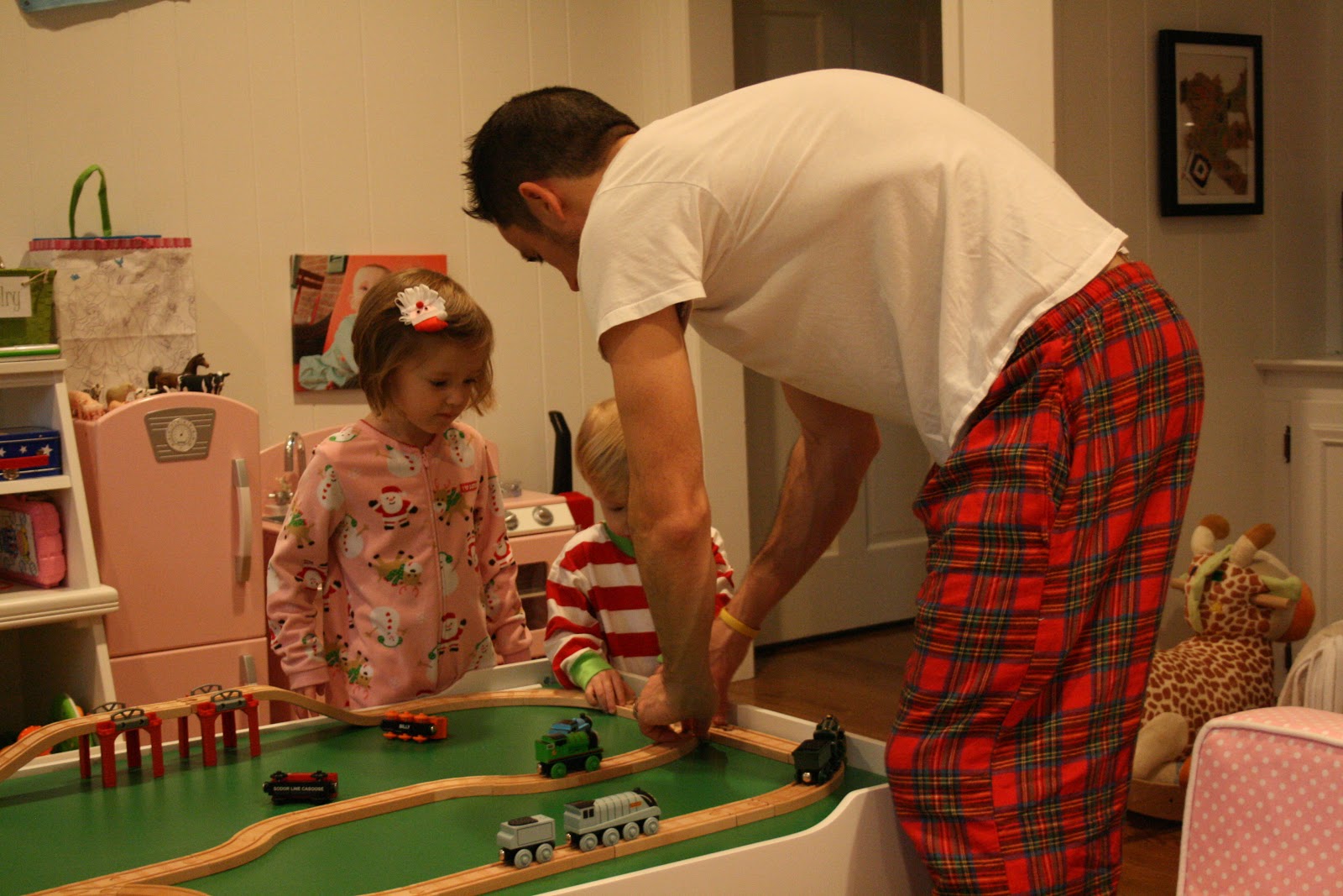 We watch a lot of Christmas movies all season long and one of our favorite traditions is watching The Nativity on Christmas Eve after the kids go to bed. Joe and I stayed up way too late doing the elves’ work. Bernard went back to the North Pole, Santa came, and on Christmas morning, Hannah was eager to go to the playroom and see if Santa did in fact eat his cookies and drink his milk. He did. And left a letter! The little ones were surprised and excited to find a train in their playroom, too!