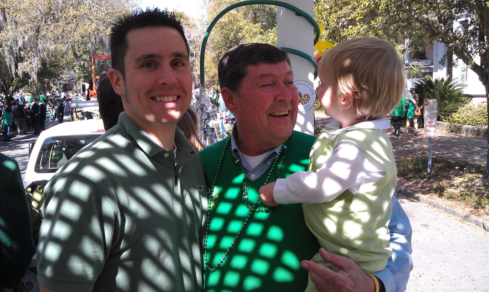 We found a parking place and played in Forsyth Park before making our way to the parade start.