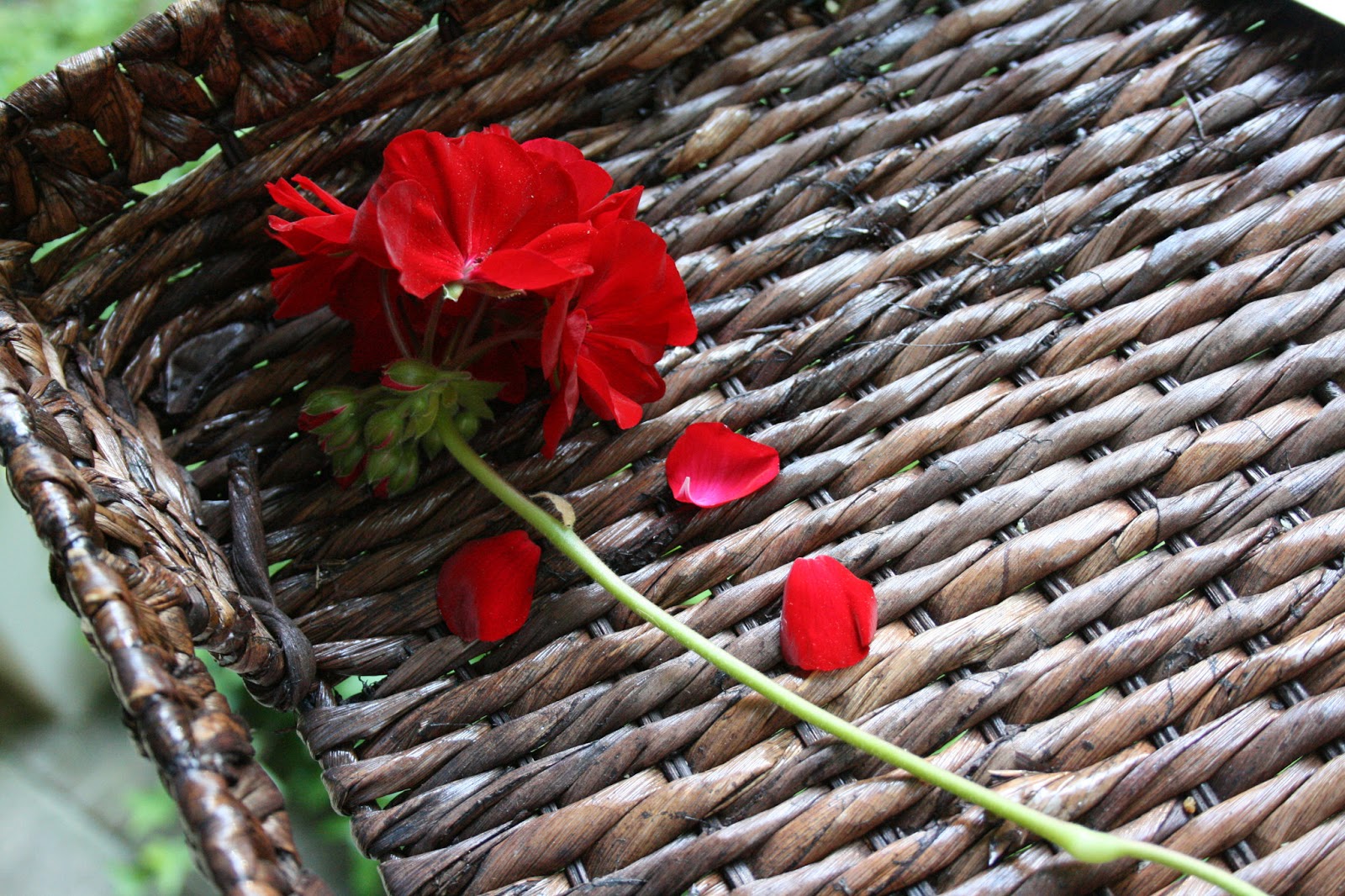 A pretty, red geranium accompanied eggs with bacon and feta, cinnamon toast, and coffee. Yummmm.