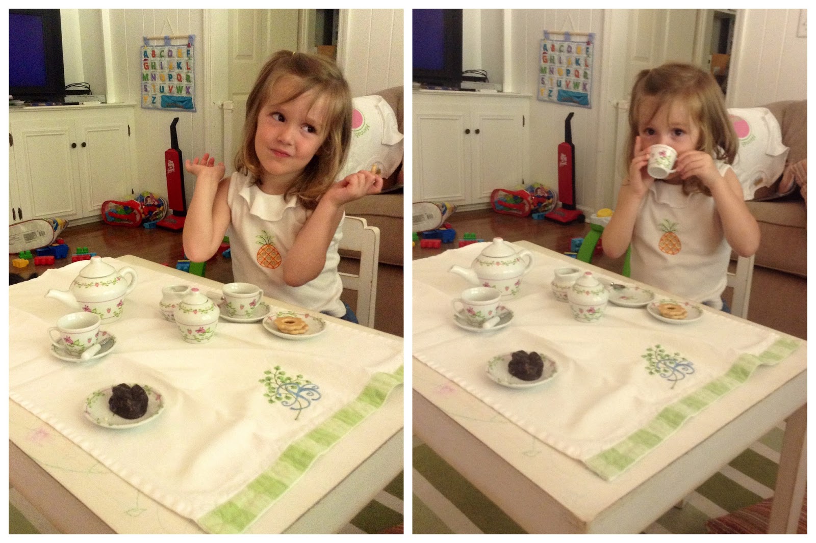 One forced smile and we called it quits. Meltdowns ensued and we decided to go home rather than out to lunch. Later in the afternoon things turned around and Hannah and I had our first tea party.