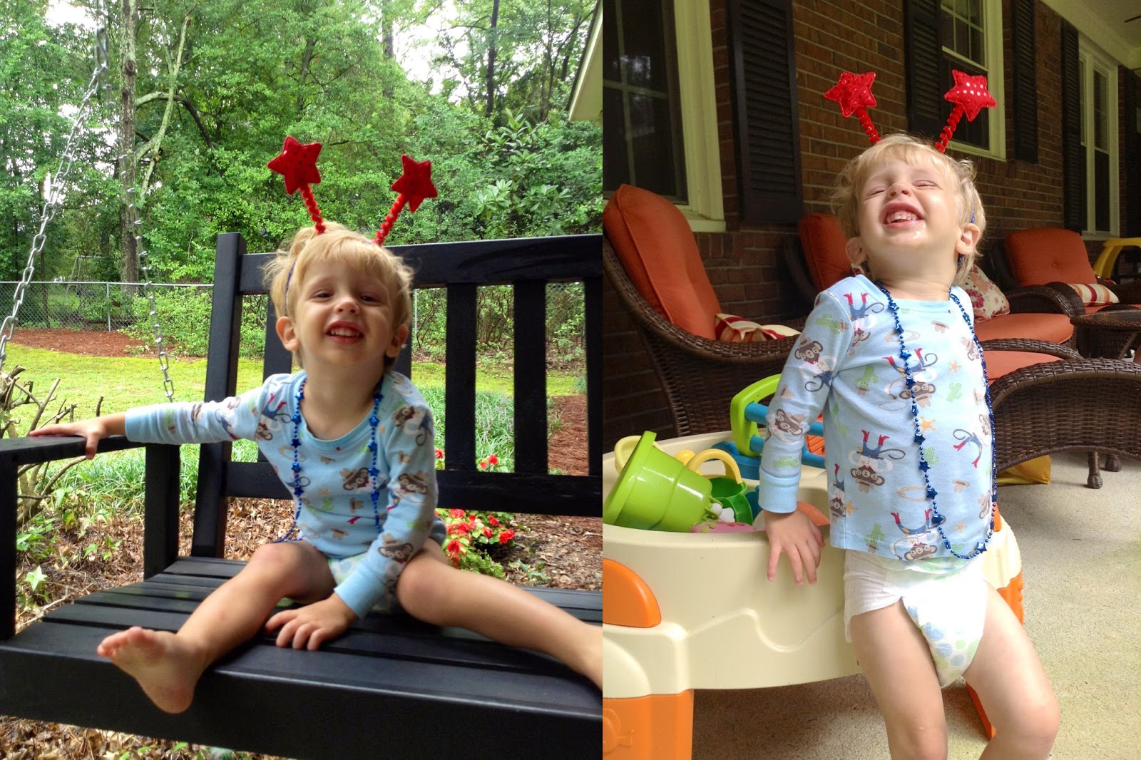 Two videos from today, one appropriate to the Fourth and one not having anything to do with it, just a song her Meme taught her while on our recent trip to Savannah.