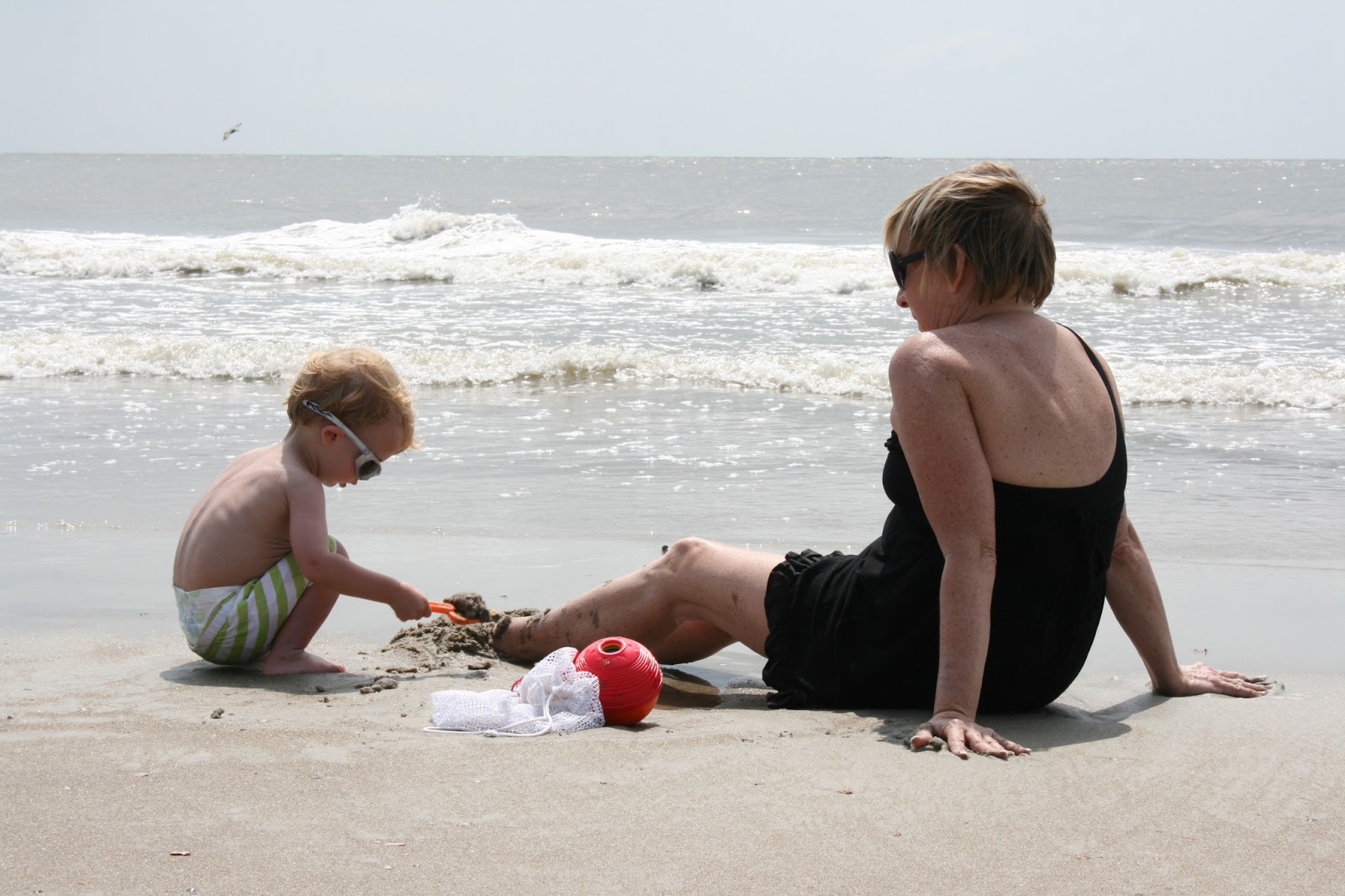 The Dream Foundation granted Uncle Pete, Aunt Kristie, and their family a week at Tybee. They stayed in a great beach house, nothing between them and the ocean but dunes. We went down to the beach several times to play. The first night we brought dinner with us and got a teeny bit of time on the sand. I love this picture of Joseph showing Uncle Pete his gummies, and Hannah talking to Meme: