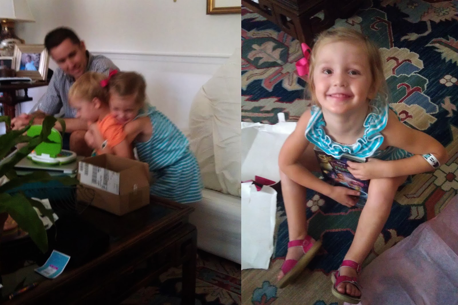 Present opening time! She was ecstatic – that’s fancy for overjoyed – when she opened The Princess and the Frog from Joseph. She’d never seen it, but it looked fun. (Now she has watched it several times.)