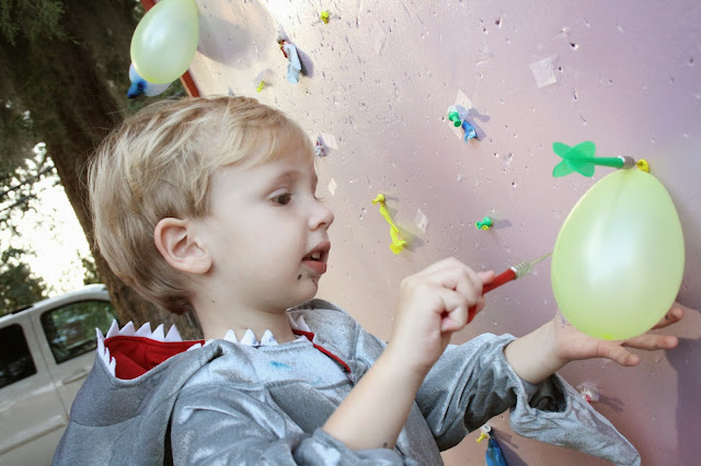 Next up was a dart-throwing/balloon-popping game. Not exactly safe for little ones, but mine had a different approach.
