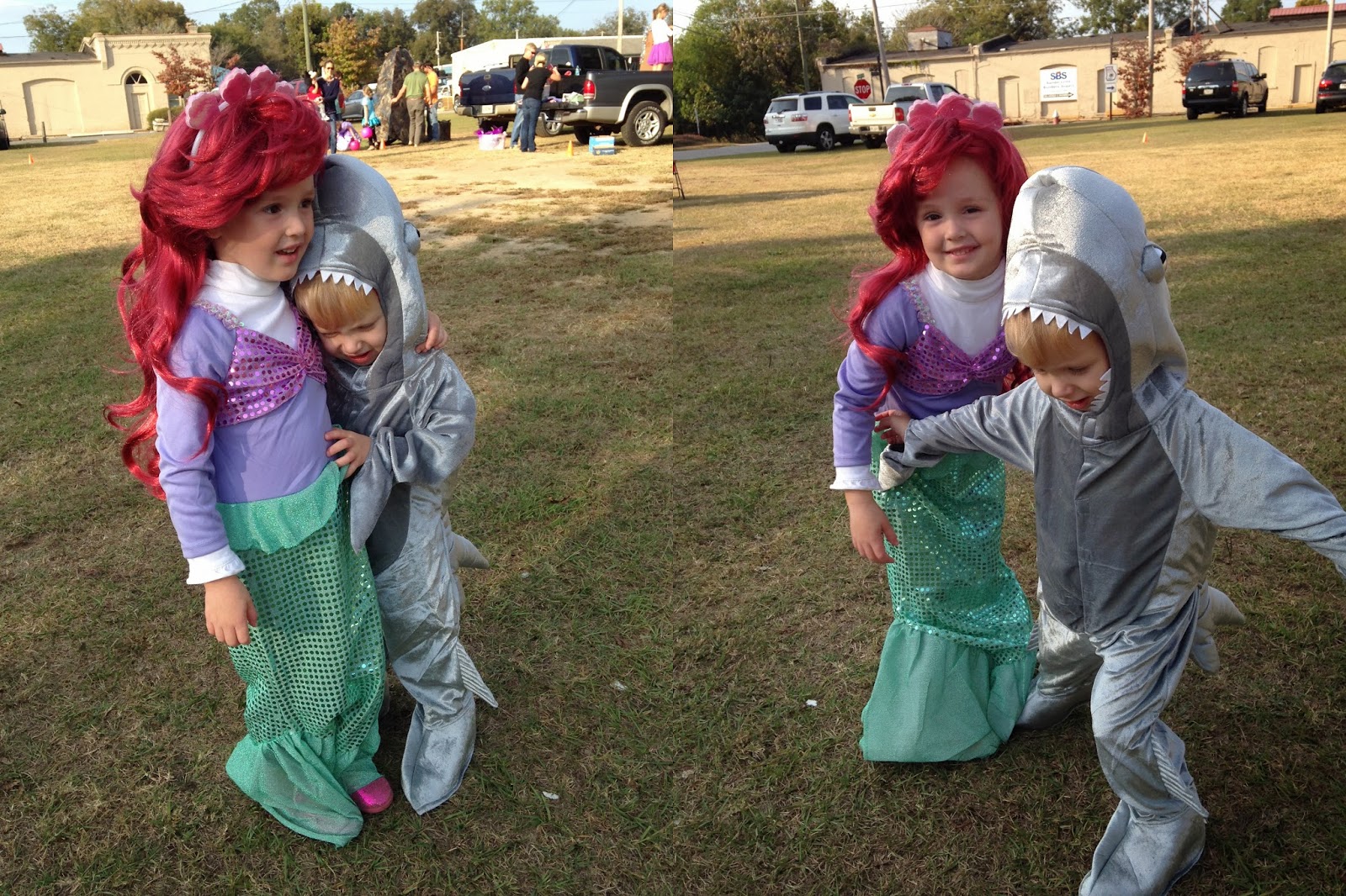 Sunday was SUMC’s annual Fall Festival and trunk-or-treat. For Halloween this year, Hannah wanted to be a mermaid. There was no discussion; she had her mind made up. And she was emphatic about the red wig. As for Joseph, Joe picked out a shark costume at TJ Maxx a while ago. We were meant to be creatures of the sea…