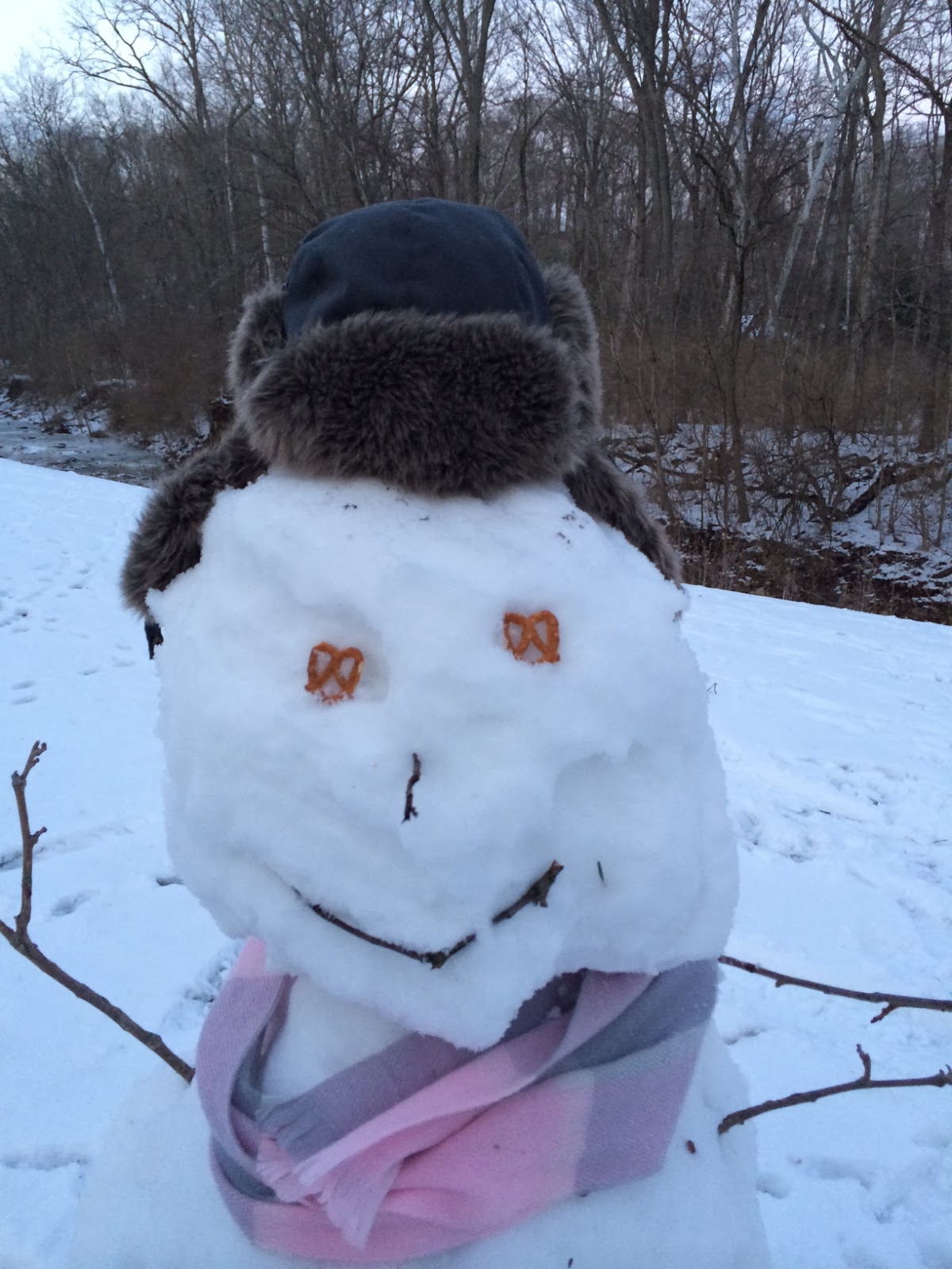 It’s technically a snowwoman, or snowperson, as Hannah named her Katelin. {Note to Julie: Hannah tells me today that she chose the name because “That’s MJ’s little sister!” Guess we need to change the spelling to Catelin with a C then!}