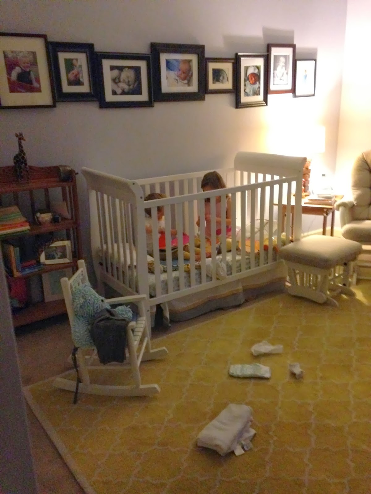 Their new thing. She goes into his room, climbs into his crib and they look at books. It’s very cute. They are best friends and love each other very much…