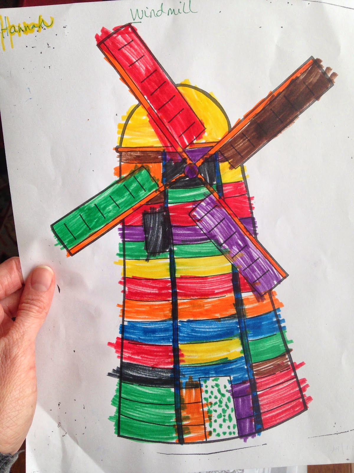 Occasionally Hannah does still bring home colorful pictures. For example, this windmill last week:
