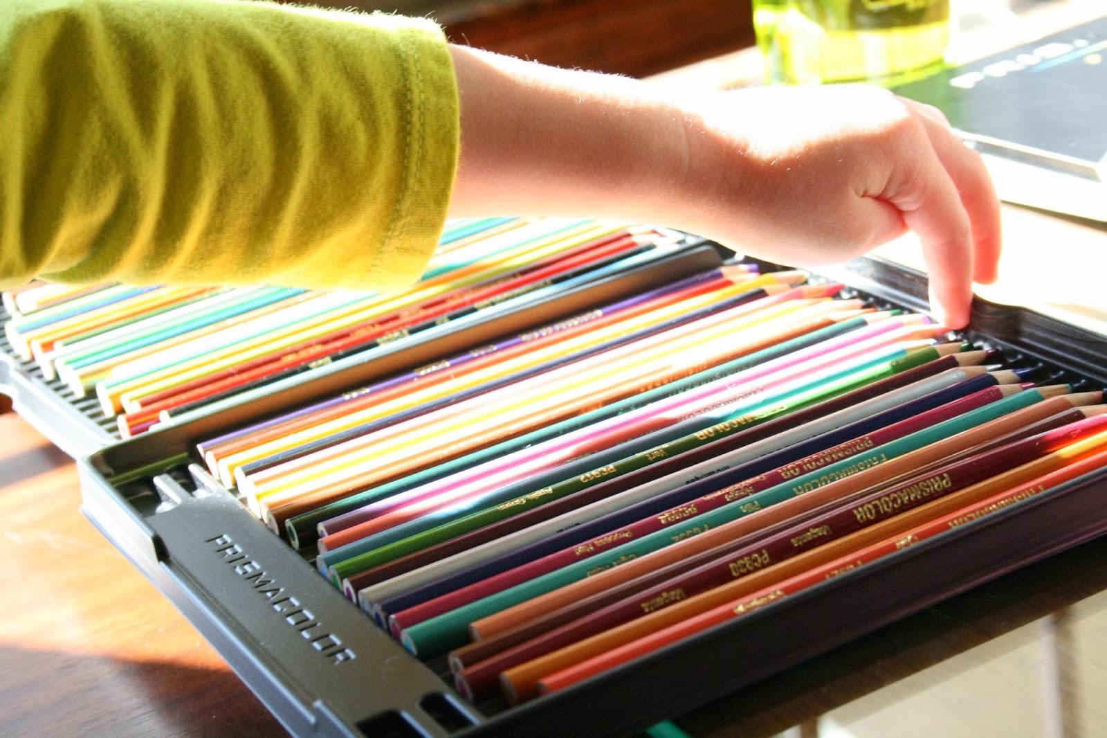 I pulled out the old art school Prismacolor pencils for her to color with. She was beside herself with excitement. Of course I gave her the “these-are-really-nice-and-expensive-colored-pencils-so-please-don’t-destroy-them” talk.