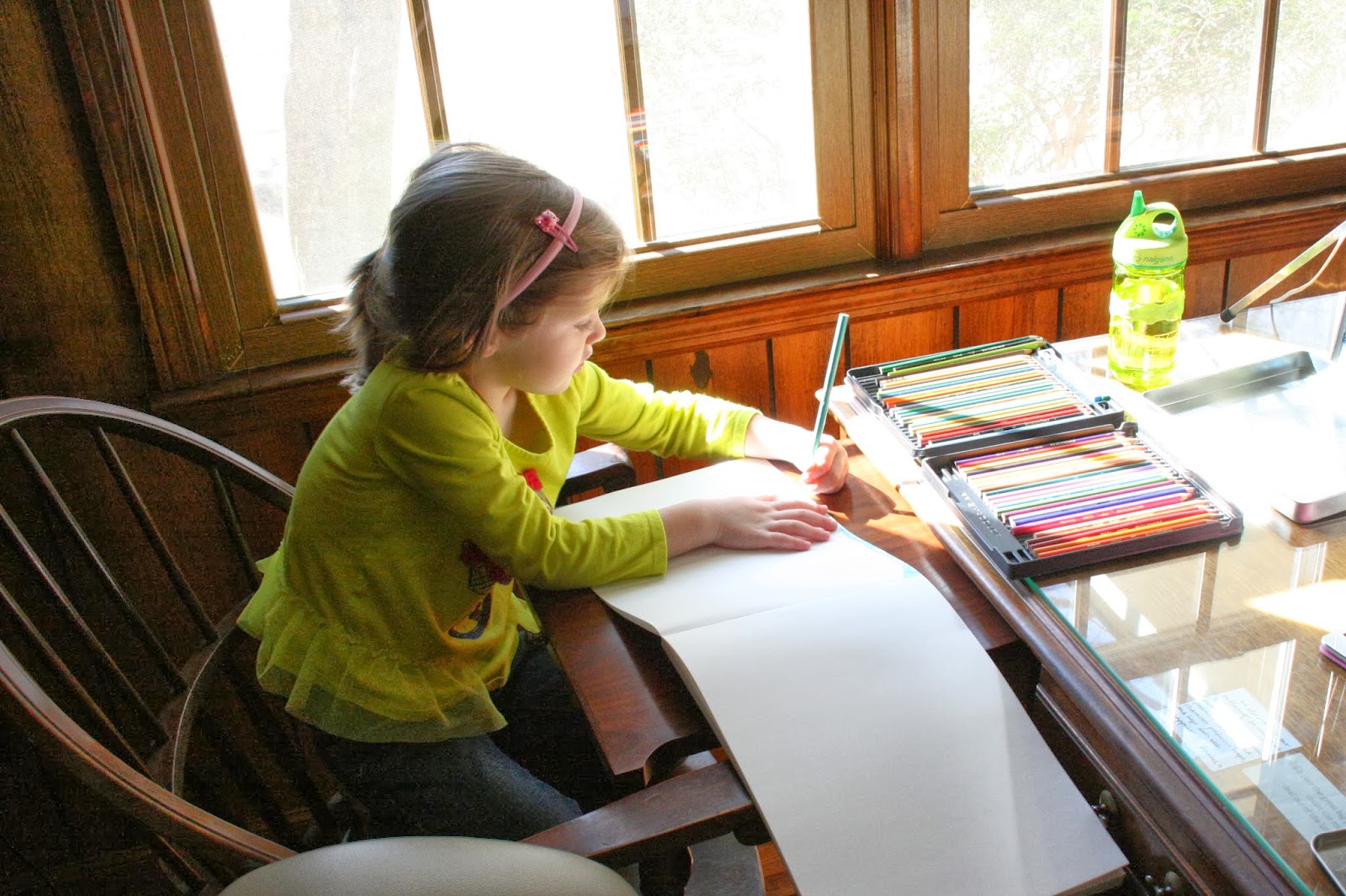 When she comes out of quiet time, and Joseph is still napping, she’ll pull up a chair next to me in the office and start another creation.