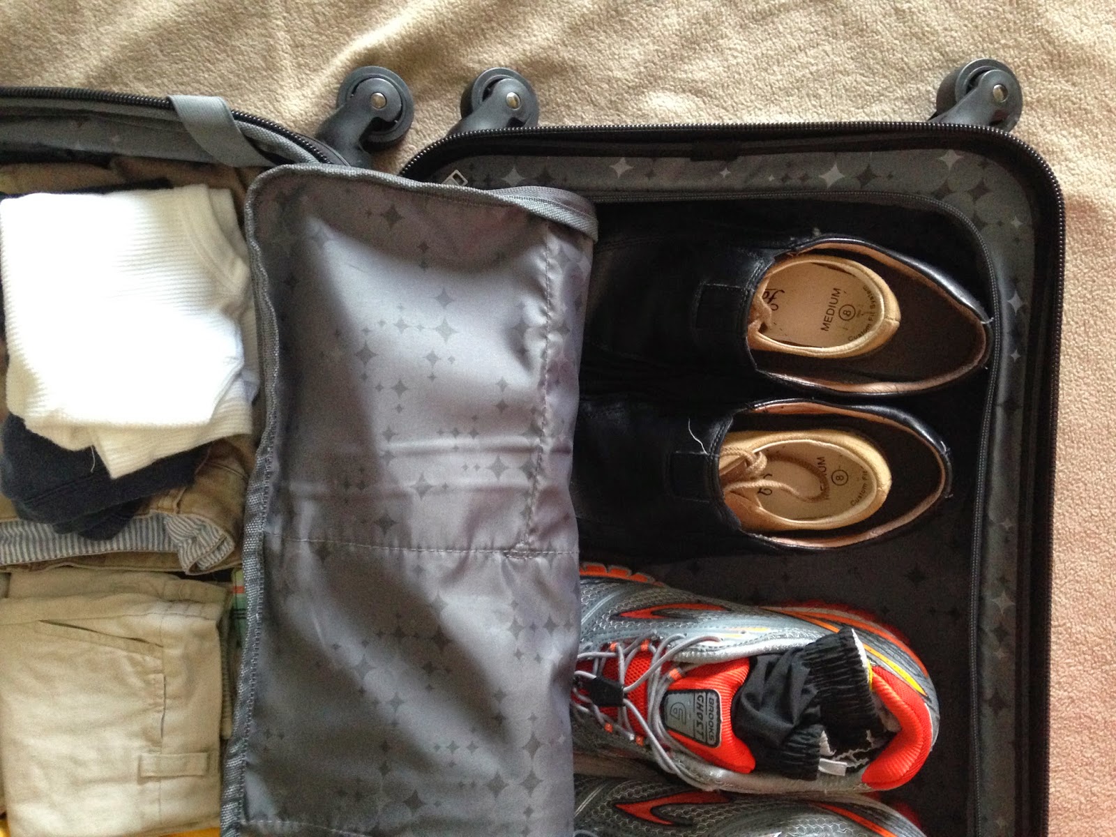 We shared suitcases and when I opened the boys’ to add some stuff and saw that, I just couldn’t help but capture the cuteness with my phone. I love his little dress shoes in his daddy’s.