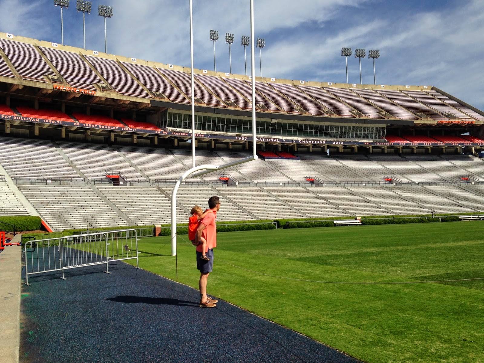 The stadium was open so we got to go in. Hannah and Joseph were amazed.