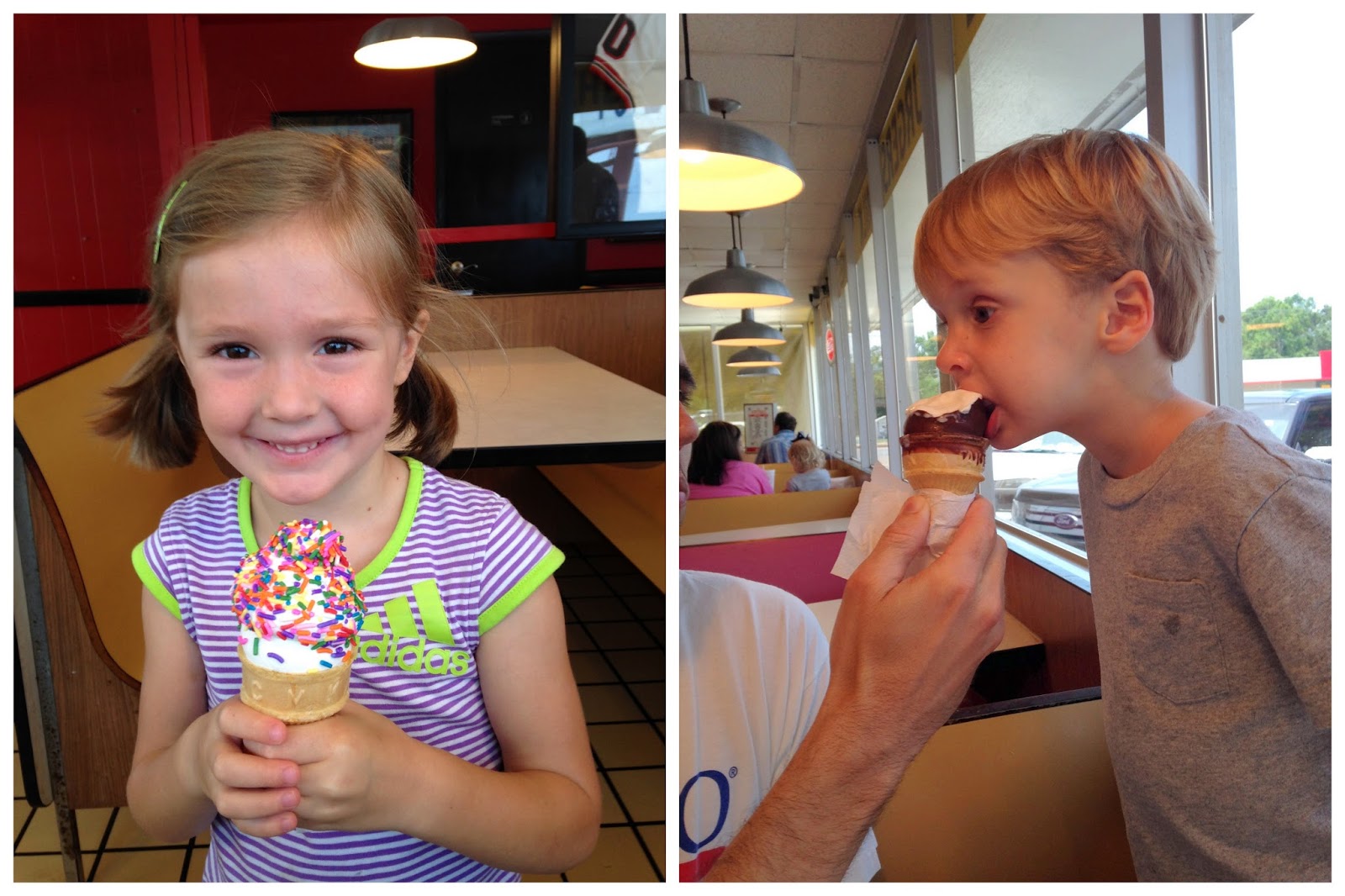 Granddaddy and Mrs. Renee sent the graduate some money to take the family out for ice cream to celebrate. She was excited and even handed the lady the money herself. Such a sweetie.