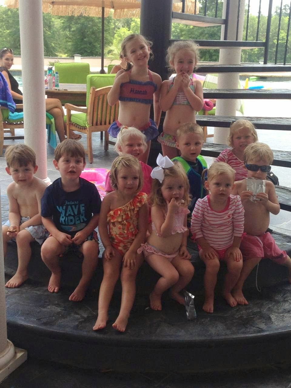 Last Tuesday my small group of girls got together for a pool party. Our kids all go (or went) to the church preschool together. Usually when we meet it’s just moms, but since it’s summer and we have our kids all day, we decided to get them together for some fun in the sun.