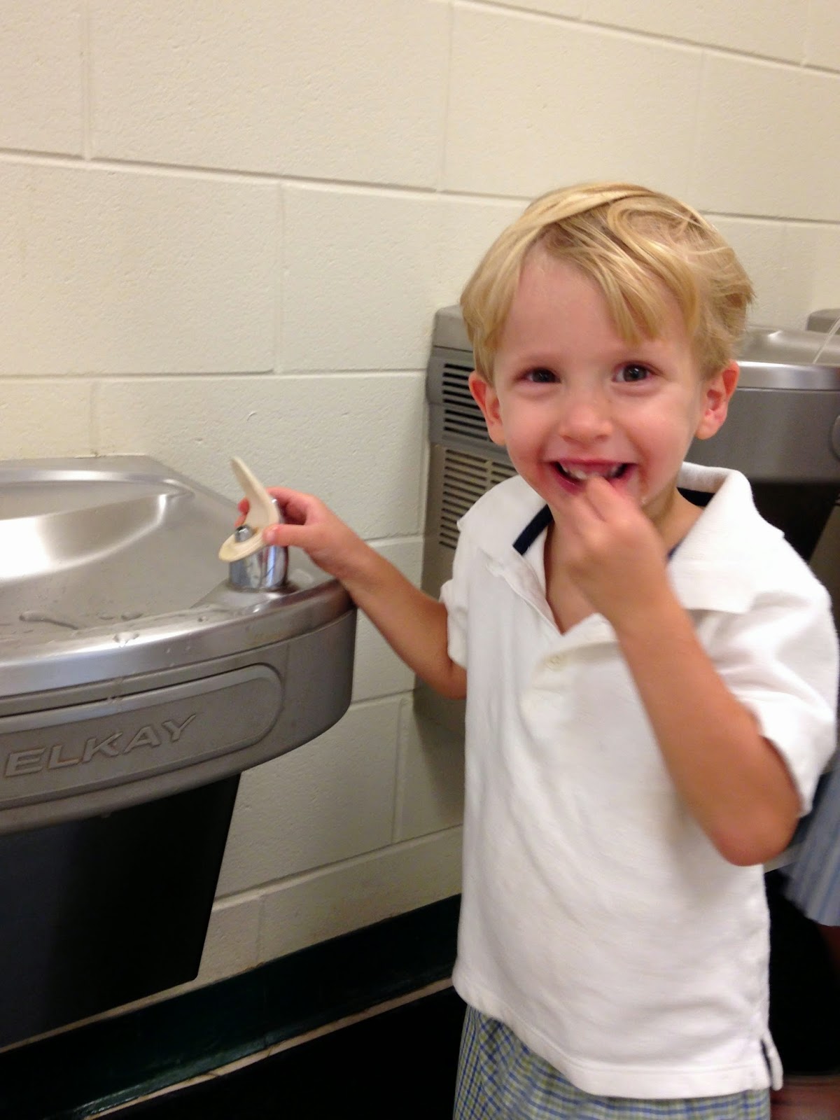 Joseph had fun playing in Hannah’s new classroom, too, and loved the water fountain in the hall even more.