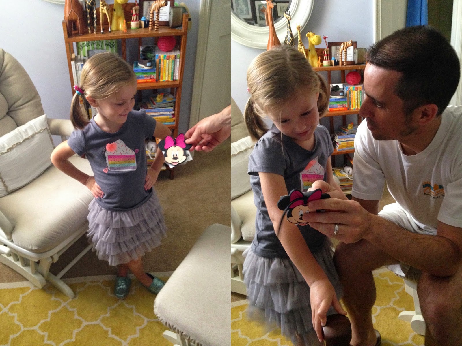 We talked about the things she found on her scavenger hunt and how she would need things like a bathing suit and flip flops, a nightgown, and a Belle costume on her trip. Then we told her we were going on a Disney cruise. She was speechless, actually. Amazed and excited, but also unsure. {What is a cruise, after all?} But she donned her Belle dress immediately and I put in the cruise DVD, and it was. all. over.