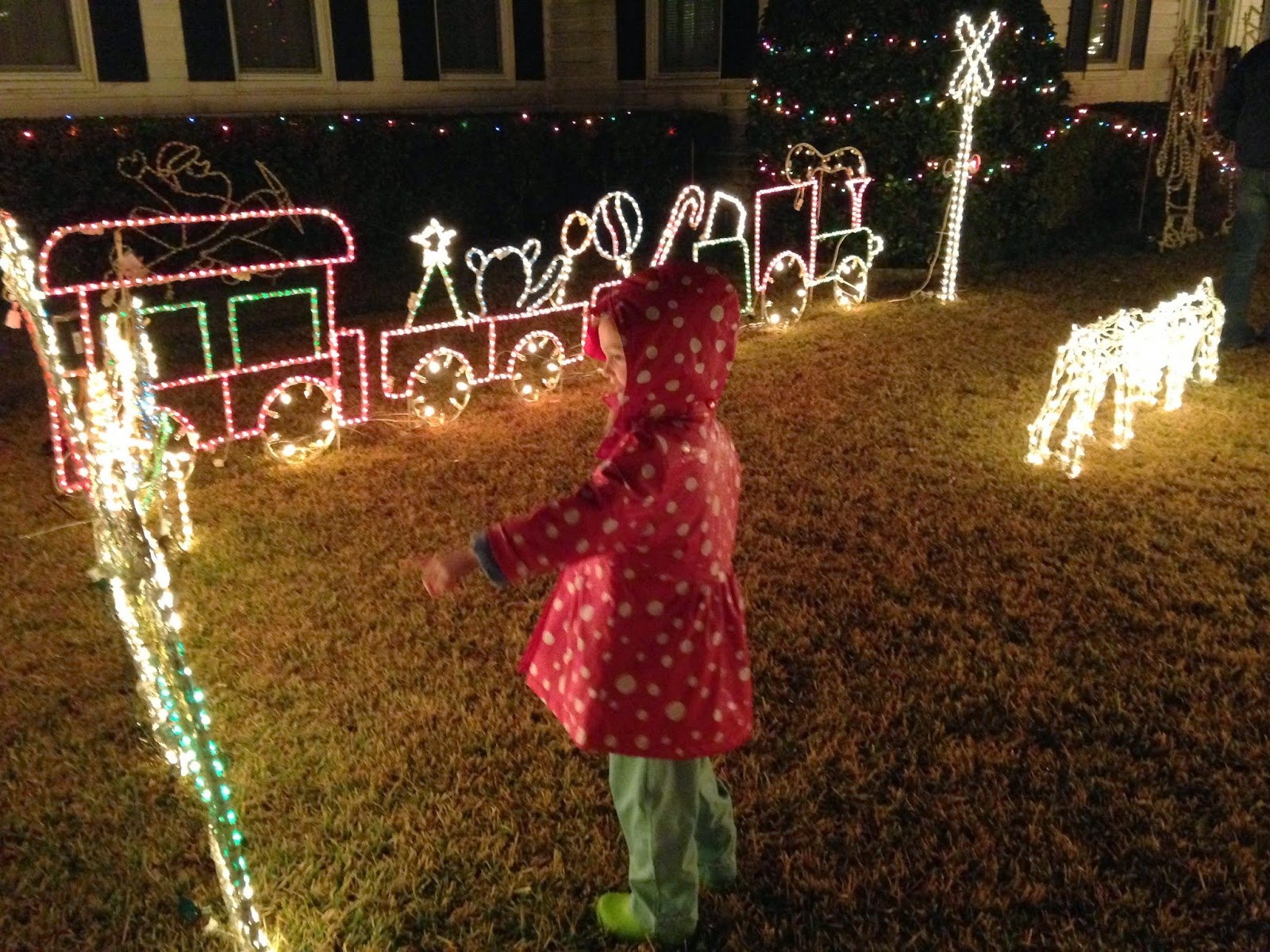 We drove to Savannah Sunday afternoon and after dinner, drove around (in the rain) looking at Christmas lights and houses all decorated. We had to put on our jackets, switch into our rain boots and get out at the Salvation Army house.