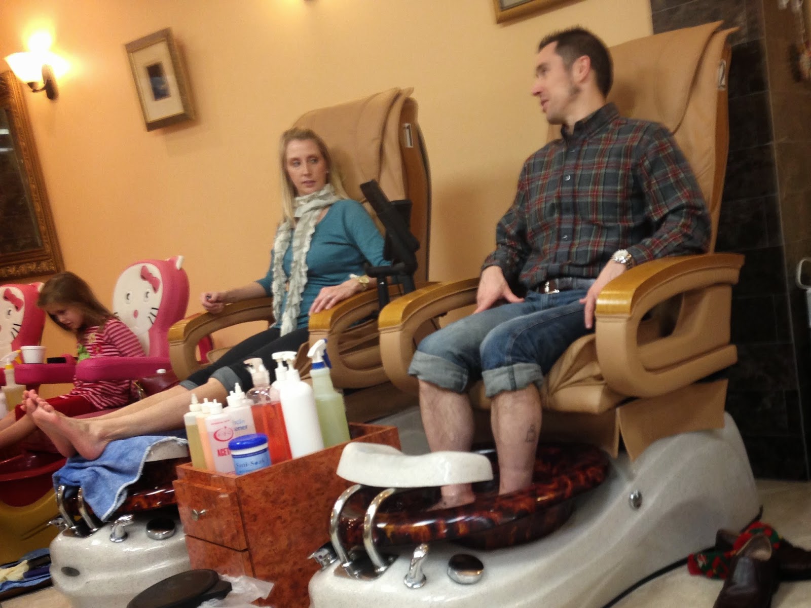 After a pancake breakfast on Tuesday we went to the mall for mani/pedis. I was thrilled when my husband agreed to have his first pedicure. I’ve only tried to talk him into getting one for 9 years!