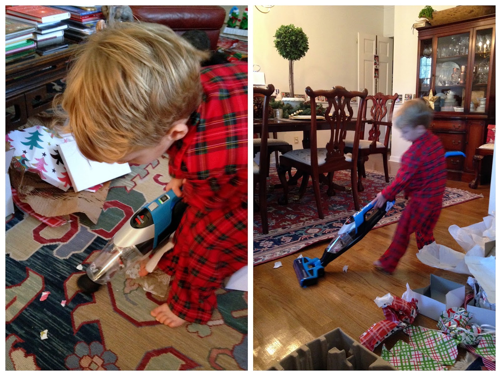 “My very own vacuum! Wow! Mom, that’s pretty cool! My very own vacuum!!!” And that’s what we call it: his very own vacuum. He was all over the place on Christmas Day and every day since cleaning up messes. His sweet sister tore bits of wrapping paper so he would have something to pick up right away. It’s been said, “Joseph got a vacuum. Momma got a maid.”
