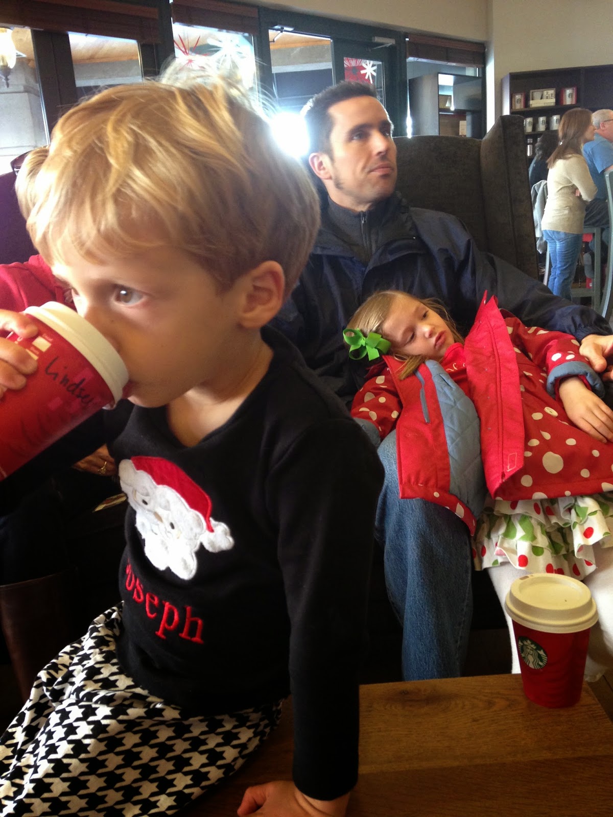 We warmed up with lattes and hot chocolate at Starbucks on Broughton Street. It was a leisurely visit as you can tell by the lounging: