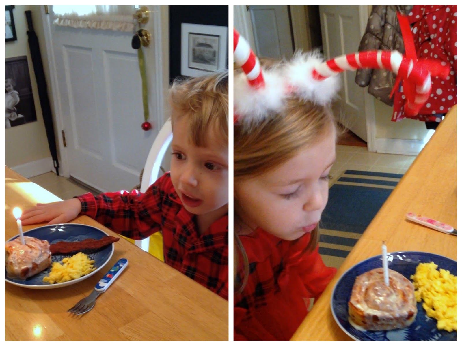 At breakfast, we stuck candles in our cinnamon rolls and sang happy birthday to Jesus.