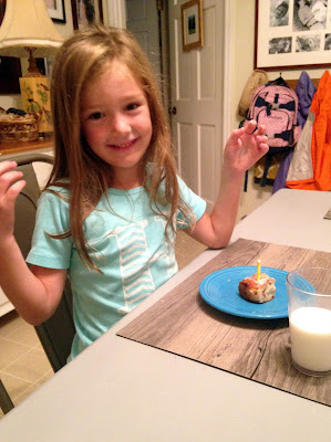 {Side story, now that she is in kindergarten, she is going straight into the cafeteria and eating breakfast in the mornings before going to her classroom at 8:00. Since I have been walking Joseph to his classroom, I walk through the cafeteria on my way out, sit with Hannah for a few minutes, and then leave. Some days, especially at first, I was sitting with her while she ate and then walking with her to the classroom. I just couldn’t bear to leave my Monkey when I’d walk in and see her eating at a table by herself. My heart would leap as I saw my little love sitting there so sweetly surrounded my no one. She insisted she liked eating alone. She’s not much of a morning person and prefers to have that time by herself (or with me). Now, the teachers overseeing breakfast have all the kids eating at the same tables, so she isn’t totally alone. Still, I can’t help myself, and at least have to go kiss her. The day when I drop them both off at the curb is coming soon enough… But anyway, I wanted her birthday breakfast to be special.}