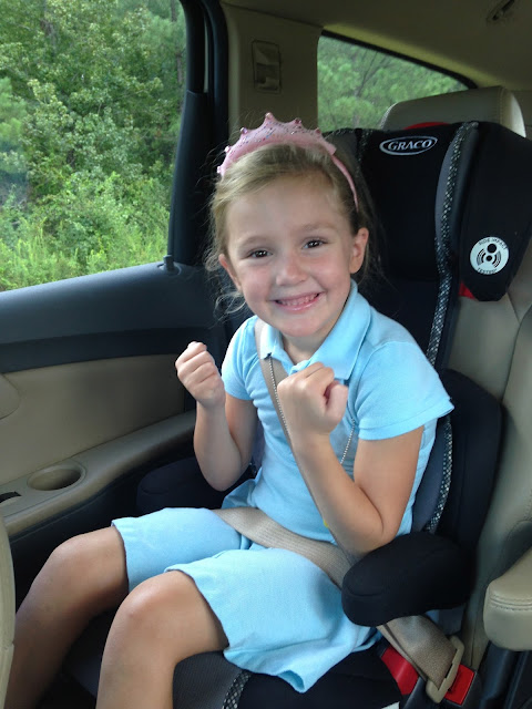 Joe and I picked up Zaxby’s and came to the school to join her for lunch. We caught her in the hallway heading to the cafeteria, and after learning that we couldn’t eat our lunch in there (outside food is allowed in lunch boxes, but apparently bringing food in at lunchtime is not. Or maybe it’s fast food…? I don’t know.), her teacher offered the classroom to us. We grabbed Joseph on the way and had a private little family lunch.