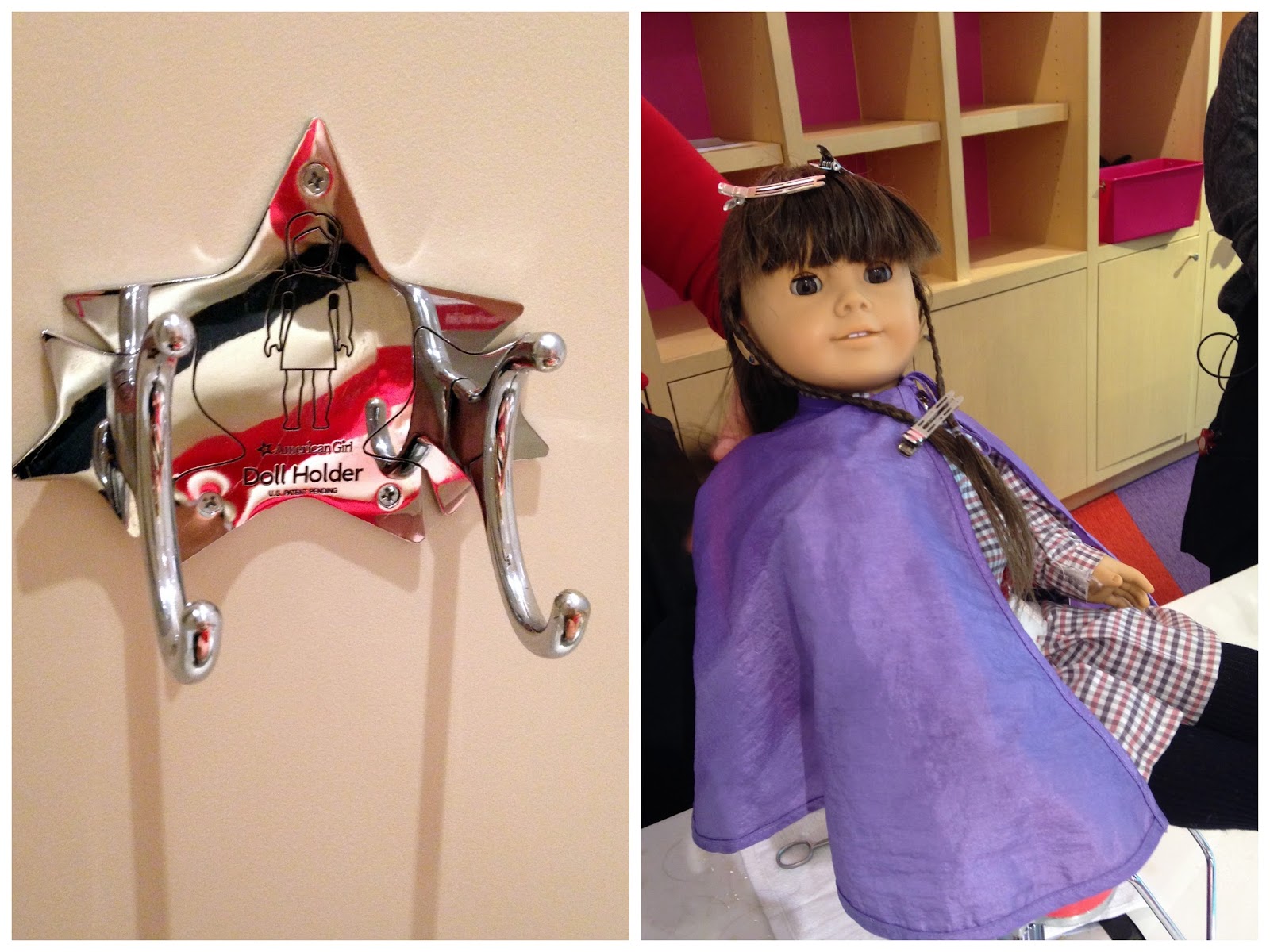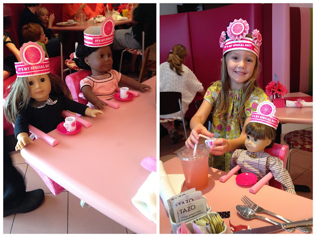 Saturday morning started with breakfast at the hotel. The boys dropped the girls off at the store just after opening at 9:00. It was perfect. My mom had scheduled appointments for two of my old American Girl dolls to have their hair redone at the Salon. Samantha also got her ears pierced!
