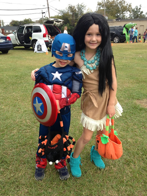 The week of Halloween was busy as it always is. We kicked off the fun with the fall festival at church on Sunday, the 25th. Pocahontas and Captain America were very excited!